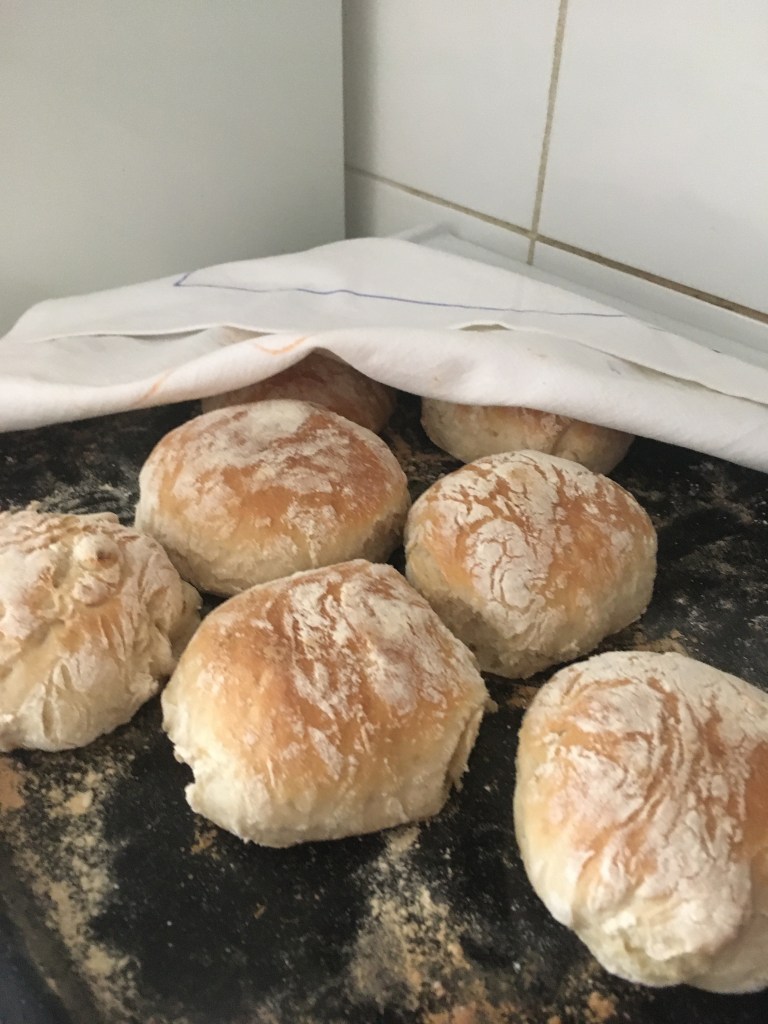 - Strö lite vetemjöl över frallorna och låt dem jäsa i ca 40 min. Sätt ugnen på 250 grader.